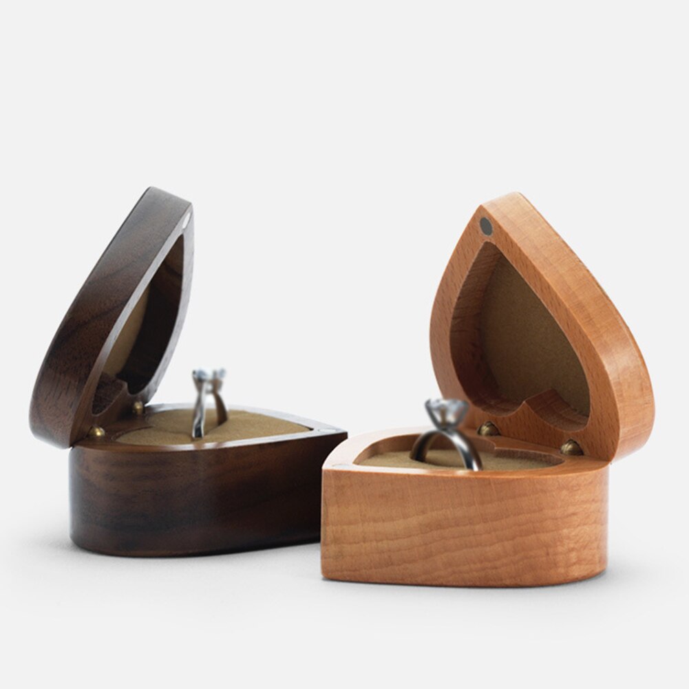 L’écrin en forme de cœur exprime la tendresse, tandis que le bois naturel symbolise la stabilité et la chaleur. Ensemble, ils créent une harmonie visuelle et émotionnelle. Cet écrin devient le témoin discret de vos instants importants : demande en mariage, anniversaire, ou déclaration d’amour.
