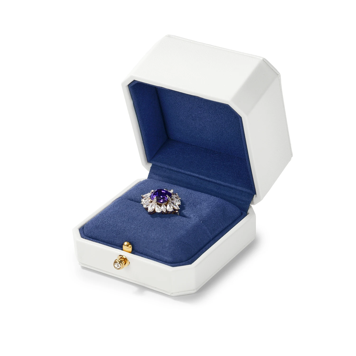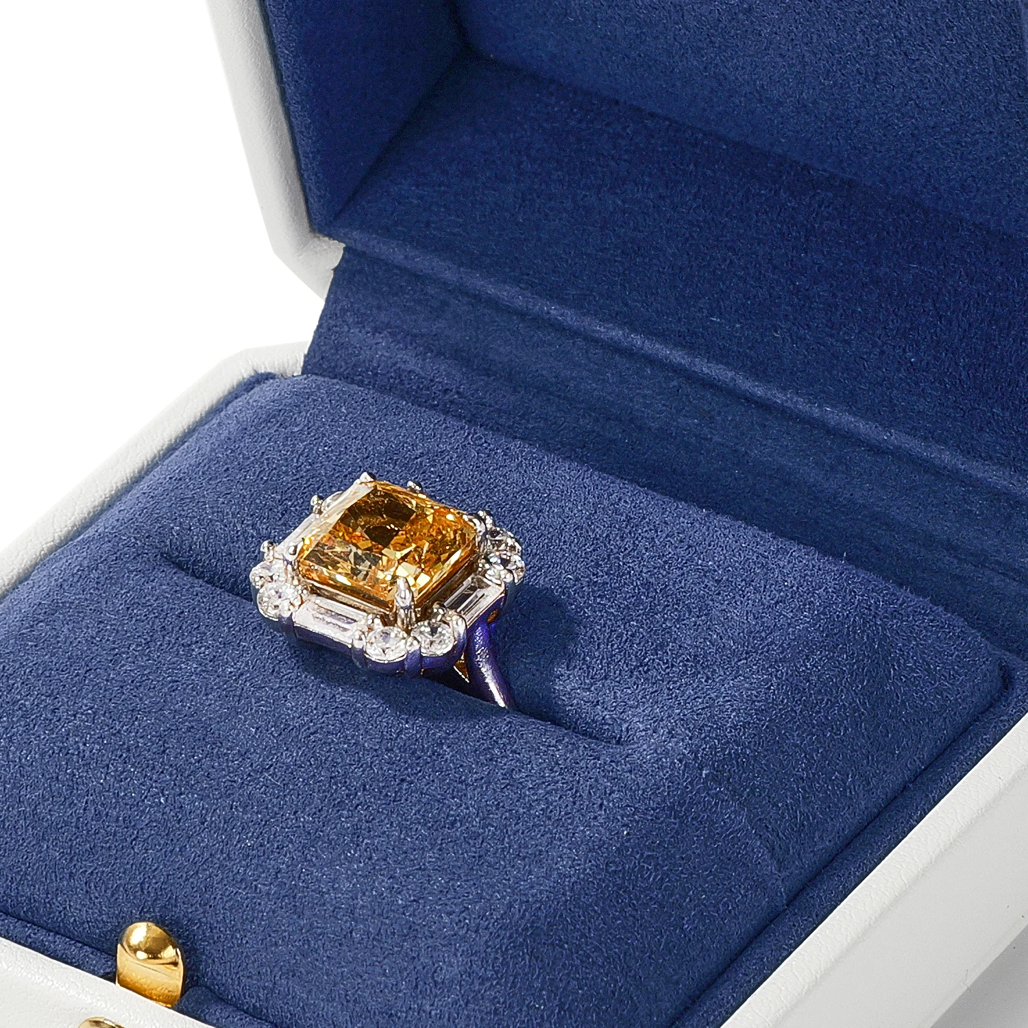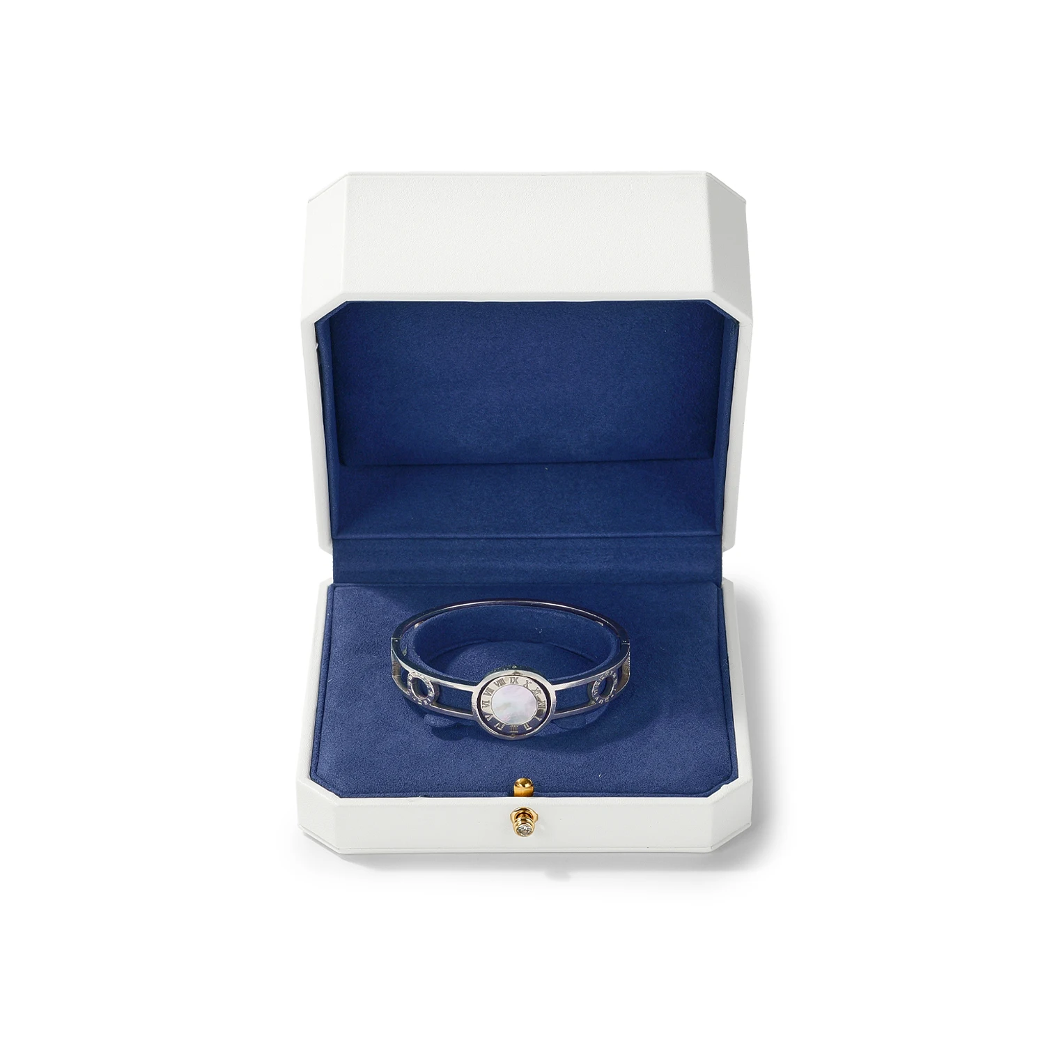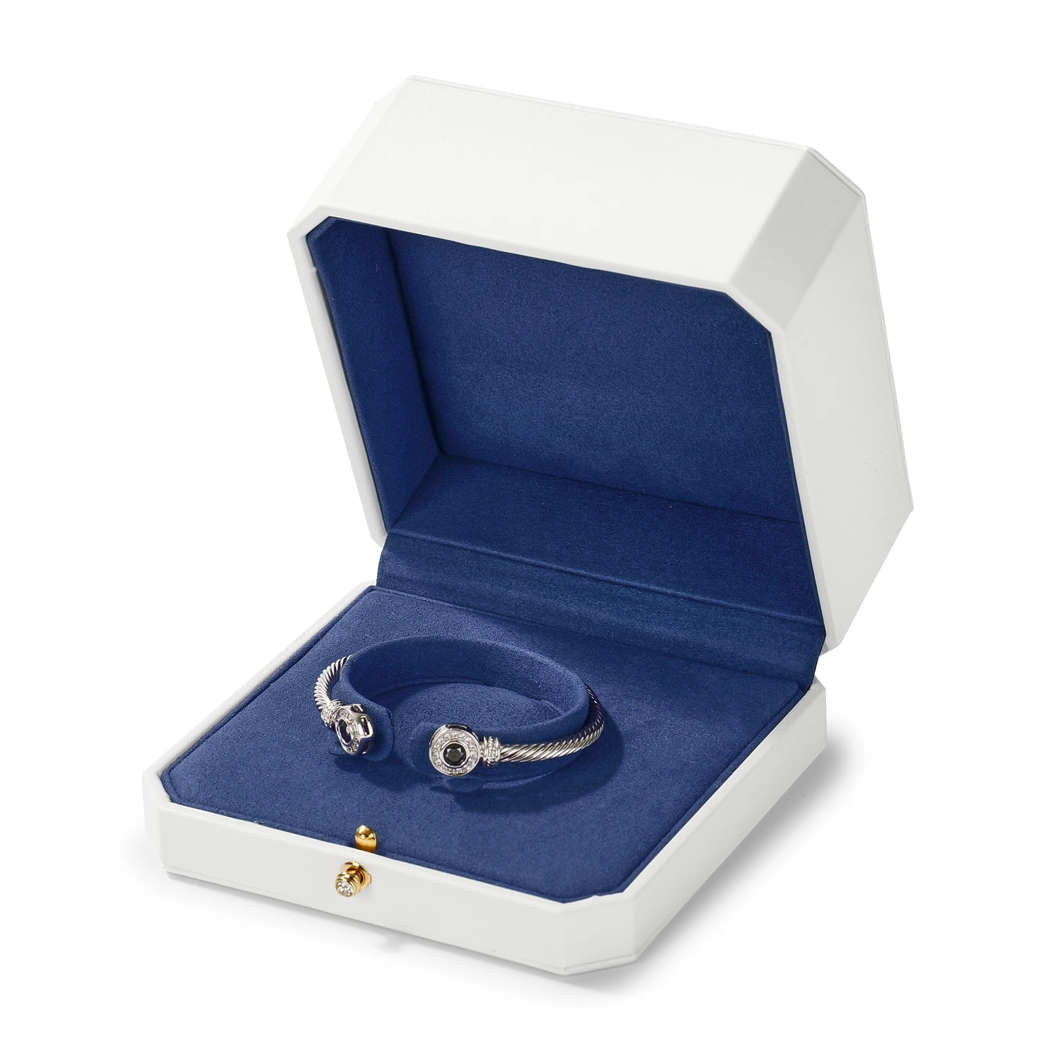 Le mariage du blanc éclatant et du bleu profond évoque la perfection visuelle d’un bijou bien mis en scène. Chaque écrin sublime la lumière et met en valeur le métal et les pierres, créant une présentation raffinée digne des plus belles vitrines.